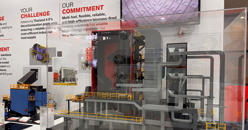 หนึ่งในไฮไลต์สำคัญของการจัดแสดงครั้งนี้คือโซลูชันระบบให้ความร้อนด้วยชีวมวลของ Thermax ซึ่งช่วยให้อุตสาหกรรมสามารถเปลี่ยนจากเชื้อเพลิงฟอสซิลแบบดั้งเดิมไปสู่พลังงานทดแทนที่สะอาดขึ้น ด้วยความสามารถในการเผาไหม้เชื้อเพลิงชีวมวลได้มากกว่า 150 ชนิด ผสานกับเทคโนโลยีตะแกรงสันเขย่านำสมัย (reciprocating grate) ทำให้ Thermax มอบความยืดหยุ่นและประสิทธิภาพที่เหนือกว่า โซลูชันเหล่านี้ให้สมรรถนะการทำงานที่เสถียร ประหยัดเชื้อเพลิง และคุ้มค่าระยะยาว ทำให้ชีวมวลเป็นทางเลือกที่ใช้งานได้จริงและขยายผลได้สำหรับการเปลี่ยนผ่านพลังงานภาคอุตสาหกรรมของไทย