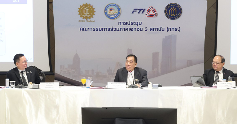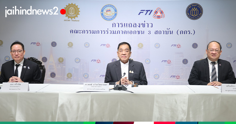 ดร.พจน์ อร่ามวัฒนานนท์ ประธานกรรมการหอการค้าไทยและสภาหอการค้าแห่งประเทศไทย เป็นประธานการแถลงข่าว คณะกรรมการร่วมภาคเอกชน 3 สถาบัน (กกร.) โดยมี นายเกรียงไกร เธียรนุกุล ประธานสภาอุตสาหกรรมแห่งประเทศไทย (ส.อ.ท.) และนายผยง ศรีวณิช ประธานสมาคมธนาคารไทย ร่วมในการแถลงข่าว ณ ศูนย์การประชุมแห่งชาติสิริกิติ์