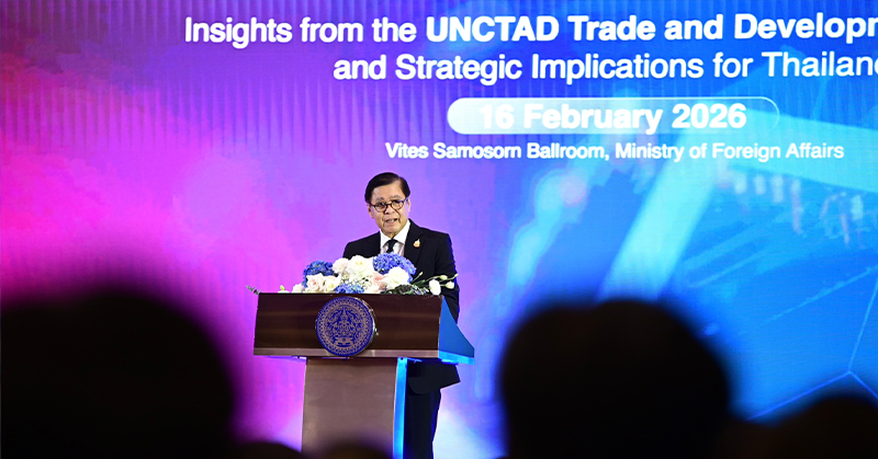 เมื่อวันที่ 16 กุมภาพันธ์ 2569 สถาบันระหว่างประเทศเพื่อการค้าและการพัฒนา (องค์การมหาชน) ITD ร่วมกับกระทรวงพาณิชย์ กระทรวงการต่างประเทศ UN Trade and Development (UNCTAD) และสมาคมนักเรียนเก่าฮาร์วาร์ดแห่งประเทศไทย จัดเวทีสัมมนาวิชาการนานาชาติหัวข้อ “Navigating Global Trade Shifts: Insights from the UNCTAD Trade and Development Report and Strategic Implications for Thailand” ณ ห้องวิเทศสโมสร กระทรวงการต่างประเทศ และผ่านระบบ Hybrid โดยมีผู้เข้าร่วมกว่า 150 คน จากภาครัฐ ภาคเอกชน สถาบันการศึกษา และองค์กรระหว่างประเทศ เพื่อร่วมกันวิเคราะห์ทิศทางเศรษฐกิจโลกจากรายงาน Trade and Development Report 2025 (TDR 2025) และกำหนดยุทธศาสตร์การค้าของไทยให้สอดรับกับบริบทโลกที่กำลังเปลี่ยนผ่านอย่างมีนัยสำคัญ