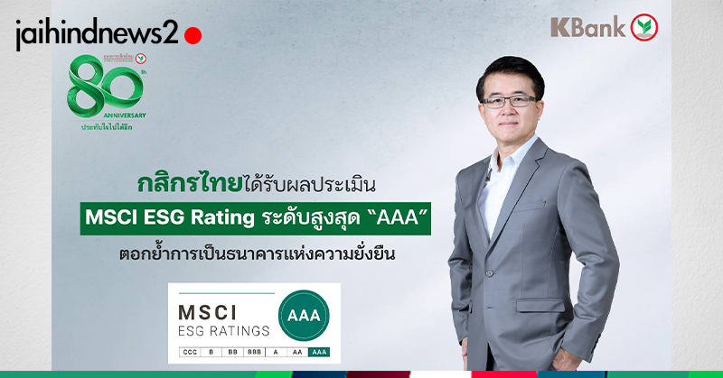 กสิกรไทย ได้รับผลประเมิน MSCI ESG Rating ระดับสูงสุด “AAA”