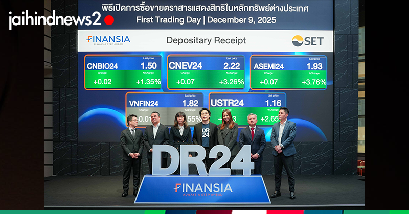 ดร. รินใจ ชาครพิพัฒน์ และ สรวิศ ไกรฤกษ์ รองผู้จัดการ ตลาดหลักทรัพย์แห่งประเทศไทย พร้อมด้วย ดร. จิติพล พฤกษาเมธานันท์ ประธานเจ้าหน้าที่ผลิตภัณฑ์ บริษัทหลักทรัพย์ ฟินันเซีย ไซรัส จำกัด (มหาชน) Mr. Thomas Nguyen, Chief Global Markets Officer, SSI Securities Vietnam และ Mr. Mitchell Lam, Intermediaries Business Development in HK & SEA, Mirae Asset Global Investments Hong Kong ร่วมพิธีเปิดการซื้อขายวันแรกในตลาดหลักทรัพย์ฯ ของ 5 DR อ้างอิงกองทุน ETF ฮ่องกง-เวียดนาม ได้แก่ ASEMI24, CNBIO24, CNEV24, USTR24 และ VNFIN24 ในวันที่ 9 ธ.ค. 2568 ผู้ลงทุนศึกษาข้อมูล DR ใหม่ได้ที่ www.fnsyrus.com หรือศึกษาผลิตภัณฑ์ DR เพิ่มเติมได้ที่ www.set.or.th/dr