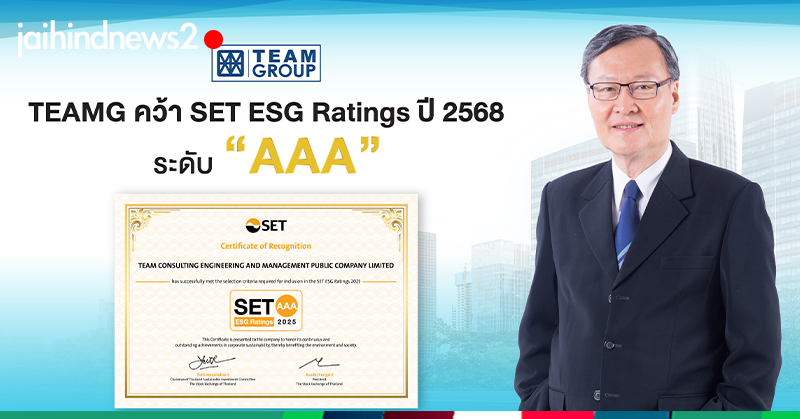 นายชวลิต จันทรรัตน์ ประธานเจ้าหน้าที่บริหาร บริษัท ทีม คอนซัลติ้ง เอนจิเนียริ่ง แอนด์ แมเนจเมนท์ จำกัด (มหาชน) หรือ TEAMG เปิดเผยว่า บริษัทมีความยินดีและภาคภูมิใจเป็นอย่างยิ่งที่ได้รับผลการประเมินหุ้นยั่งยืน “SET ESG Ratings ประจำปี 2568” ในระดับ “AAA” ซึ่งเป็นระดับสูงสุด สะท้อนให้เห็นถึงความทุ่มเทและความมุ่งมั่นขององค์กรในการขับเคลื่อนธุรกิจตามแนวทางการพัฒนาอย่างยั่งยืน โดย TEAMG มุ่งมั่นพัฒนาบุคลากร องค์ความรู้ และความเชี่ยวชาญด้านที่ปรึกษาทางวิศวกรรมแบบครบวงจร เพื่อส่งมอบผลงานที่มีคุณภาพและการให้บริการแบบมืออาชีพ อีกทั้งยังขยายขอบเขตไปยังการให้บริการด้านการจัดการสภาพภูมิอากาศและก๊าซเรือนกระจก ซึ่ง TEAMG ได้รับการขึ้นทะเบียนเป็นหน่วยตรวจสอบและทวนสอบ T-VER จากองค์การบริหารจัดการก๊าซเรือนกระจก (องค์การมหาชน) หรือ อบก. มุ่งส่งเสริมสังคมคาร์บอนต่ำอย่างยั่งยืนสู่ทุกภาคส่วน