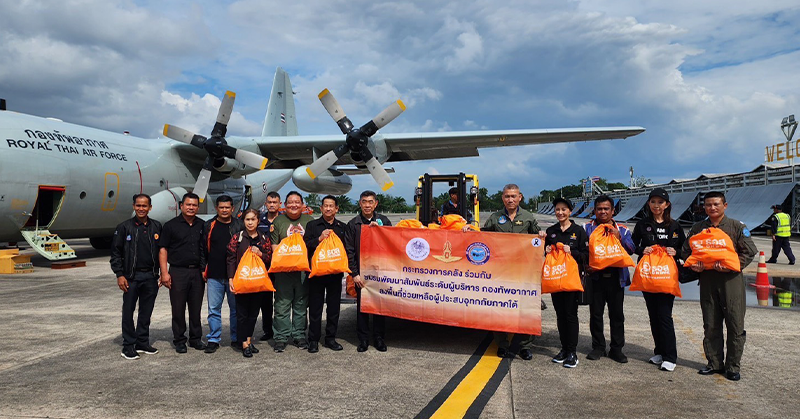 ดร.เอกนิติ นิติทัณฑ์ประภาศ รองนายกรัฐมนตรีและรัฐมนตรีว่าการกระทรวงการคลัง มอบหมายให้นายอัครุตม์ สนธยานนท์ อธิบดีกรมธนารักษ์ เป็นผู้แทนกระทรวงการคลัง ร่วมกับ ธนาคารอาคารสงเคราะห์ (ธอส.) โดยนายธะเรศ โปษยานนท์ กรรมการธนาคาร นายกมลภพ วีระพละ กรรมการผู้จัดการ และชมรมพัฒนาสัมพันธ์ระดับผู้บริหาร กองทัพอากาศ โดยพลอากาศโทประสิทธิ์ ดำรงปรีชา เจ้ากรมกิจการพลเรือนทหารอากาศ ในฐานะประธานชมรมฯ และนางสาวโกมล เจียรวนนท์ ประธานบริหารชมรมฯ พร้อมคณะ เดินทางโดยเครื่องบิน C-130 ของกองทัพอากาศจากท่าอากาศยานทหาร 2 กองบิน 6 ไปยังกองบิน 56 อำเภอหาดใหญ่ จังหวัดสงขลา เพื่อส่งมอบถุงยังชีพที่บรรจุเครื่องอุปโภคบริโภค และสิ่งของจำเป็น รวมถึงอาหารพร้อมทาน จำนวนกว่า 1,200 ชุด ให้แก่ลูกค้าและประชาชนในพื้นที่อำเภอหาดใหญ่และบริเวณโดยรอบที่ประสบอุทกภัย