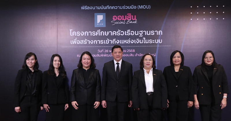 วันนี้ (28 พฤศจิกายน 2568) ณ ธนาคารออมสินสำนักงานใหญ่ นายวิทัย รัตนากร ผู้ว่าการธนาคารแห่งประเทศไทย เป็นประธานและสักขีพยานในพิธีลงนามความร่วมมือ โครงการศึกษาครัวเรือนฐานรากเพื่อสร้างการเข้าถึงแหล่งเงินในระบบ ระหว่าง ธนาคารออมสิน และ สถาบันวิจัยเศรษฐกิจป๋วย อึ๊งภากรณ์ เพื่อศึกษาความเป็นอยู่และพฤติกรรมทางการเงินของกลุ่มครัวเรือนฐานรากที่ยังไม่สามารถเข้าถึงการเงินในระบบ ที่จะนำไปสู่การต่อยอดองค์ความรู้ จากการวิจัยในการพัฒนาระบบการเงินที่เหมาะสม ช่วยยกระดับเศรษฐกิจและความเข้มแข็งทางการเงินของภาคครัวเรือนไทย โดยมี ดร. โสมรัศมิ์ จันทรัตน์ ผู้อำนวยการสถาบันวิจัยเศรษฐกิจป๋วย อึ๊งภากรณ์ และนางลภาวรรณ จันทร์กระจ่าง รองผู้อำนวยการธนาคารออมสิน รักษาการแทนผู้อำนวยการธนาคารออมสิน ร่วมลงนามบันทึกข้อตกลงดังกล่าว