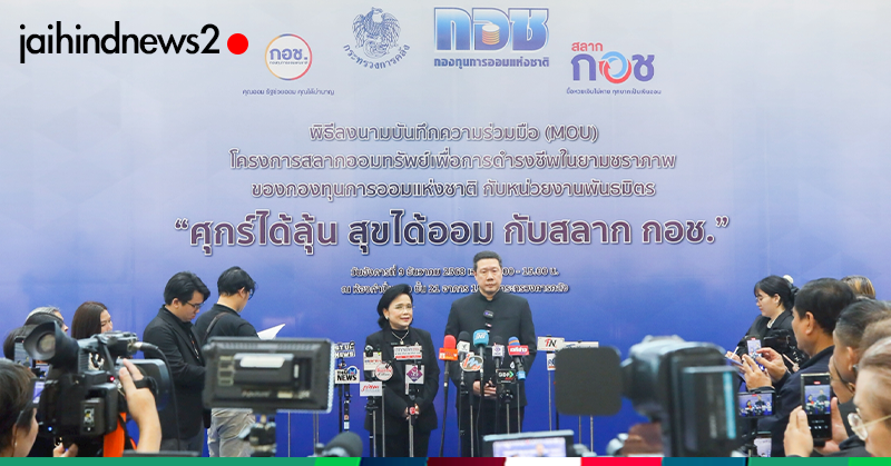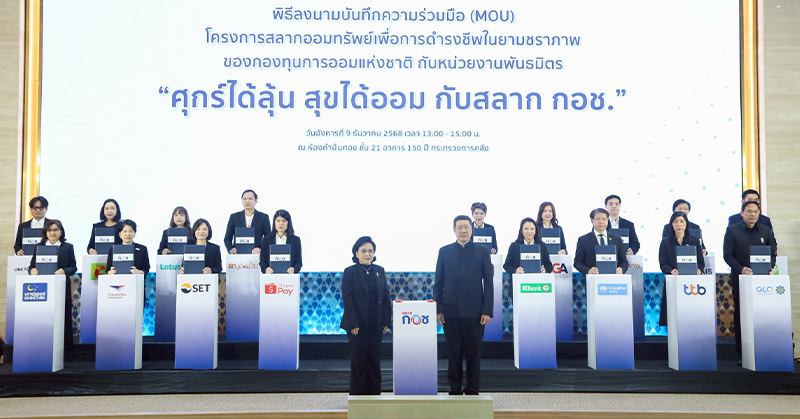กองทุนการออมแห่งชาติ (กอช.) จัดงานแถลงข่าวบันทึกความร่วมมือ (MOU) โครงการสลากออมทรัพย์เพื่อการดำรงชีพในยามชราภาพของกองทุนการออมแห่งชาติ กับหน่วยงานพันธมิตร “ศุกร์ได้ลุ้น สุขได้ออม กับสลาก กอช.” เพื่อยกระดับการออมของคนไทยเข้าสู่การออมผ่านดิจิทัล ที่สะดวก รวดเร็ว ครอบคลุมทุกช่องทาง ทุกพื้นที่ พร้อมลุ้นรางวัลใหญ่ 1 ล้านบาททุกสัปดาห์ โดยภายในงานยังได้เปิดตัวแอปพลิเคชัน กอช. รูปแบบใหม่ ที่จะสามารถทำธุรกรรม เปิดบัญชี ติดตามเงินออม ข้อมูลข่าวสารของสมาชิก กอช. รวมถึงการจำหน่ายสลาก กอช. ในอนาคตด้วย