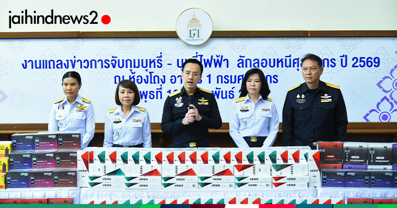 วันนี้ (18 กุมภาพันธ์ 2569) เวลา 13.30 น. นายพันธ์ทอง ลอยกุลนันท์ อธิบดีกรมศุลกากร พร้อมด้วย ผู้บริหารกรมศุลกากร แถลงข่าวการจับกุมบุหรี่ – บุหรี่ไฟฟ้า ลักลอบนำเข้า มูลค่ากว่า 169 ล้านบาท