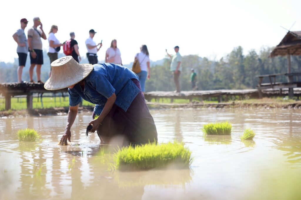 นางสาวพรหมกร พรหมขัติแก้ว ผู้ช่วยผู้จัดการธนาคารเพื่อการเกษตรและสหกรณ์การเกษตร (ธ.ก.ส.) พร้อมด้วยนายธารา ศรีหะมาศ ผู้ช่วยผู้จัดการ ธ.ก.ส. ลงพื้นที่เยี่ยมชมชุมชนบ้านนาต้นจั่น ตำบลบ้านตึก อำเภอศรีสัชนาลัย จังหวัดสุโขทัย หนึ่งในต้นแบบชุมชนอุดมสุขที่ยั่งยืนยอดเยี่ยมระดับประเทศ ที่ดำเนินงานด้านการท่องเที่ยววิถีชุมชนมาแล้วกว่า 20 ปี มีความโดดเด่นทั้งในด้านโฮมสเตย์ระดับมาตรฐานและสภาพแวดล้อมที่ประกอบด้วยทิวทัศน์ที่สวยงามให้ผู้ที่มาเยือนได้สัมผัสกับวิถีชุมชน มีรูปแบบการบริหารจัดการด้านการท่องเที่ยวแบบมืออาชีพด้วยกิจกรรมที่หลากหลาย อาทิ ศูนย์สาธิตตุ๊กตาบาโหน การทอผ้าใต้ถุนบ้าน นั่งรถอีแต๊กดื่มด่ำบรรยากาศธรรมชาติ