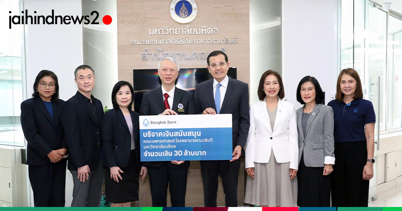 ธนาคารกรุงเทพ จำกัด (มหาชน) นำโดย นายโชค ณ ระนอง ผู้ช่วยผู้จัดการใหญ่ ผู้จัดการสายบัตรเครดิต (ที่ 4 จากขวา) นางสาวพจณี คงคาลัย ผู้ช่วยผู้จัดการใหญ่ บริหารความสัมพันธ์และการขาย ( ที่ 3 จากขวา) นางสาวสุดฤทัย ทองสอง เจ้าหน้าที่บริหารระดับ Senior Vice President สายบัตรเครดิต (ที่ 2 จากขวา) มอบเงินบริจาค จำนวน 30 ล้านบาท แก่ คณะแพทยศาสตร์โรงพยาบาลรามาธิบดี มหาวิทยาลัยมหิดล นำโดย ศาสตราจารย์คลินิก นายแพทย์อาทิตย์ อังกานนท์ คณบดี คณะแพทยศาสตร์โรงพยาบาลรามาธิบดี (ที่ 4 จากซ้าย) รองศาสตราจารย์ ดร.แพทย์หญิงอารีย์พรรณ โสภณสฤษฎ์สุข รองคณบดีฝ่ายการคลัง (ที่ 3 จากซ้าย) ณ สำนักงานคณบดี อาคารบริหาร โรงพยาบาลรามาธิบดีเพื่อสนับสนุนการดำเนินงานของคณะแพทยศาสตร์โรงพยาบาลรามาธิบดี มหาวิทยาลัยมหิดล ในการรักษาพยาบาล วิจัย และพัฒนานวัตกรรมทางการแพทย์ต่อยอดการดูแลสุขภาพคนไทยอย่างมีประสิทธิภาพ ตอกย้ำความมุ่งมั่นของธนาคาร เพื่อร่วมเป็นส่วนหนึ่งของการสร้างคุณภาพชีวิตที่ดีให้กับทุกคนในสังคมไทยอย่างยั่งยืน