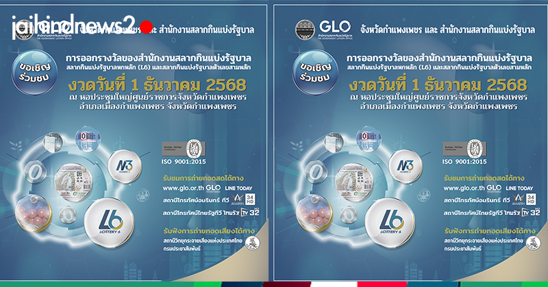 ขอเชิญประชาชนชาวจังหวัดกำแพงเพชรและจังหวัดใกล้เคียง ร่วมชมการออกรางวัลสลากสัญจรครั้งนี้ได้ในวันที่ 1 ธันวาคม 2568 ตั้งแต่เวลา 12.00 น. เป็นต้นไป รวมทั้งติดตามความเคลื่อนไหวและภารกิจ ที่น่าสนใจของสำนักงานสลากกินแบ่งรัฐบาล ได้ที่ www.glo.or.th, Facbook Fanpage สำนักงานสลากกินแบ่งรัฐบาล, Line Official GLO Lottery และช่องทางล่าสุด TikTok ชื่อบัญชี GLO สำนักงาน