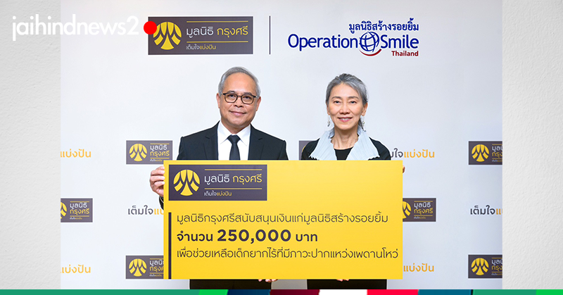 มูลนิธิกรุงศรี โดย นายไพโรจน์ ชื่นครุฑ ประธานคณะเจ้าหน้าที่ด้านกลยุทธ์และวางแผนธุรกิจองค์กร ธนาคารกรุงศรีอยุธยา จํากัด (มหาชน) ในฐานะผู้แทนมูลนิธิกรุงศรี มอบเงินสนับสนุนแก่มูลนิธิสร้างรอยยิ้ม จำนวน 250,000 บาท เพื่อสนับสนุนโครงการผ่าตัดแบบต่อเนื่อง สำหรับเด็กด้อยโอกาสที่มีภาวะปากแหว่งเพดานโหว่ ณ โรงพยาบาลชลบุรี จังหวัดชลบุรี โดยมี ทันตแพทย์หญิงยุพเรศ นิมกาญจน์ ประธานกรรมการมูลนิธิสร้างรอยยิ้ม เป็นผู้รับมอบ โดยตลอดระยะเวลา 5 ปีที่ผ่านมา มูลนิธิกรุงศรีได้ให้การช่วยเหลือแก่เยาวชนที่มีภาวะปากแหว่งเพดานโหว่ให้ได้รับการรักษาที่เหมาะสมและทันท่วงที รวมจำนวนทั้งสิ้น 63 คน