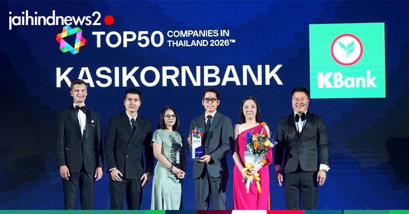 นายศาสตรา มังกรอัศวกุล (ที่ 3 จากขวา) รองผู้จัดการใหญ่ ธนาคารกสิกรไทย พร้อมด้วยผู้บริหารสายงานทรัพยากรบุคคล เป็นตัวแทนธนาคารรับมอบรางวัล 1 ใน 50 บริษัทชั้นนำที่น่าทำงานที่สุด ในงาน TOP50 Companies in Thailand 2026 จากผลสำรวจความคิดเห็นคนทำงานรุ่นใหม่กว่า 12,000 คน โดยธนาคารกสิกรไทยอยู่ในลำดับที่ 12 ของบริษัทที่น่าร่วมงานด้วยมากที่สุด และได้รับรางวัลมาอย่างต่อเนื่อง 8 ปีซ้อน สะท้อนมาตรฐานการบริหารคนและวัฒนธรรมองค์กรชั้นนำที่เติบโตไปพร้อมโลกการทำงาน โดยธนาคารกสิกรไทยยังคงมุ่งมั่นสนับสนุนให้คนทำงานได้เป็นตัวเองอย่างเต็มประสิทธิภาพ ผ่านวิธีการทำงานที่ให้พนักงานได้ ‘ลอง ลุย เติบโต’ พร้อมผสานการทำงานด้วย AI และ Innovation เพื่อยกระดับคุณภาพชีวิตของทั้งลูกค้าและสังคม รางวัลดังกล่าวจัดโดย WorkVenture ที่ปรึกษาและผู้ให้บริการแพลตฟอร์มค้นหางาน เพื่อยกย่องเชิดชูเกียรติแก่นายจ้างองค์กรชั้นนำในการบริหารจัดการองค์กรได้อย่างมีประสิทธิภาพ ณ ห้อง ฟูจิ แกรนด์บอลรูม โรงแรมนิกโก้ กรุงเทพฯ เมื่อเร็ว ๆ นี้