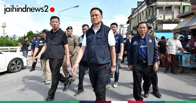 เมื่อเวลา 14.15 น. วันที่ 6 ธ.ค. นายอนุทิน ชาญวีรกูล นายกรัฐมนตรีและรมว.มหาดไทย และคณะ ขึ้นเฮลิคอปเตอร์จากจังหวัดสงขลา มายังค่ายสมันตรัฐบุรินทร์ จังหวัดสตูล จากนั้นนายกฯ นั่งรถยนต์โตโยต้า อัลพาร์ด สีดำ ทะเบียน กง 3333 สตูล เดินทางต่อมายังตลาดสดเทศบาลเมืองสตูล และชุมชนชนาธิป เพื่อเยี่ยมเยียนผู้ประสบอุทกภัยและมอบถุงยังชีพให้กับประชาชนจำนวน 200 ถุง โดยเมื่อนายกฯ เดินทางมาถึงตลาดสดเทศบาลเมืองสตูล ได้เดินดูร้านสตูลค้าข้าว ซึ่งมีโกดังเก็บข้าวและได้รับความเสียหายข้าวเน่าเสีย