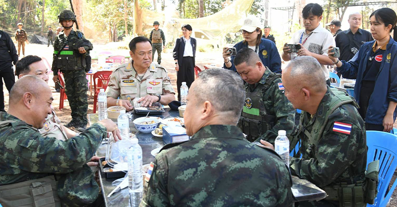 วันที่ 29 ธันวาคม 2568 ที่ฐานปฏิบัติการเฝ้าระวังปราสาทตาควาย จ.สุรินทร์ นายอนุทิน ชาญวีรกูล นายกฯและรมว.มหาดไทย พร้อมคณะ เดินทางลงพื้นที่ให้กำลังใจกำลังพลที่อยู่ปฏิบัติหน้าที่บริเวณชายแดน โดยนายอนุทิน ได้ร่วมทานอาหารกลางวันกับกำลังพล และเดินดูชีวิตความเป็นอยู่ของกำลังพล ก่อนที่จะเดินทางต่อไปยังบริเวณปราสาทตาควาย