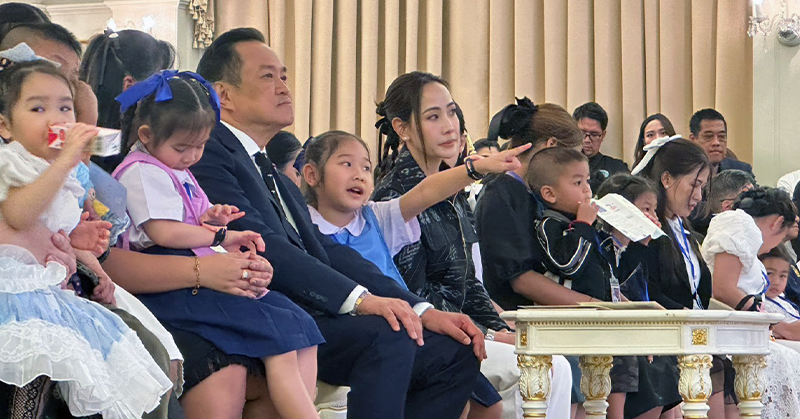 จากนั้นเวลา 09.43 น. นายกฯ ถ่ายภาพคู่ร่วมกับเด็กและเยาวชน (เด็กพิการและด้อยโอกาสจากกระทรวงการพัฒนาสังคมและความมั่นคงของมนุษย์ (พม.) และบุตรธิดาทหารกล้าที่เสียชีวิตจากเหตุการณ์สู้รบในพื้นที่ชายแดนไทย – กัมพูชา) ที่เข้าเยี่ยมชมตึกไทยคู่ฟ้าและได้นั่งเก้าอี้นายกฯ ซึ่งบรรยากาศเต็มเปี่ยมไปด้วยความอบอุ่นและภาคภูมิใจ โดยครอบครัว จ่าสิบเอก สำเริง คลังประโคน หนึ่งในวีรบุรุษเนิน 350 ปราสาทตาควายได้เดินทางมาในครั้งนี้ด้วย