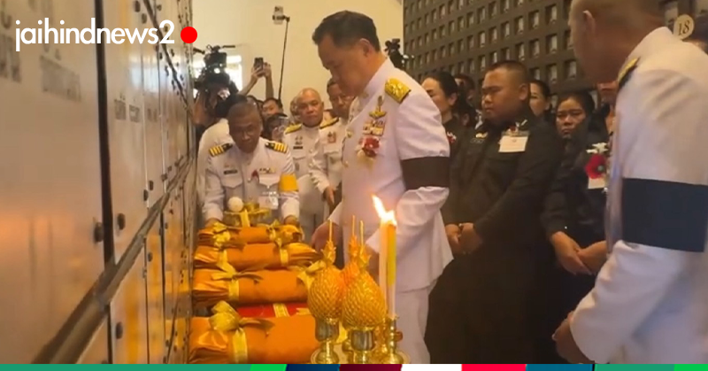 จากนั้นในเวลา 09.00 น. นายอนุทิน ชาญวีรกูล นายกรัฐมนตรี และรมว.มหาดไทย เป็นประธานพิธีบรรจุอัฐิทหารที่เสียชีวิต จำนวน 42 นาย พร้อมด้วยพลโท อดุลย์ บุญธรรมเจริญ รมช.กลาโหม คณะผู้บริหารระดับสูงขององค์การทหารผ่านศึก และครอบครัวของกำลังพลผู้เสียสละเข้าร่วมพิธี ซึ่งการบรรจุอัฐิ จะเรียงตามตัวอักษรพยัญชนะไทย จำนวน 41 นาย ส่วนอีก 1 นาย ซึ่งนับถือศาสนาอิสลาม ไม่ได้มีการบรรจุอัฐิ แต่มีการติดชื่อร่วมกับทหารนายอื่นด้วย