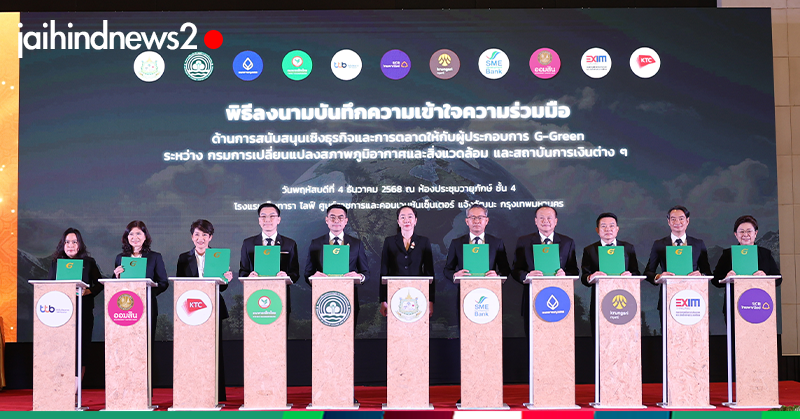 นางศิริพร เลิศสัตยสุกใส รองผู้อำนวยการธนาคารออมสิน ร่วมลงนามบันทึกความเข้าใจความร่วมมือด้านการสนับสนุนเชิงธุรกิจและการตลาดให้กับผู้ประกอบการ G – Green กับกรมการเปลี่ยนแปลงสภาพภูมิอากาศและสิ่งแวดล้อม โดยมี ดร. พิรุณ สัยยะสิทธิ์พานิช อธิบดีกรมการเปลี่ยนแปลงสภาพภูมิอากาศและสิ่งแวดล้อม เป็นผู้ลงนาม พร้อมด้วยผู้บริหารจากสถาบันการเงินรวม 8 หน่วยงาน และมี ดร.ชญานันท์ ภักดีจิตต์ ปลัดกระทรวงทรัพยากรธรรมชาติและสิ่งแวดล้อม ร่วมเป็นเกียรติและสักขีพยาน เพื่อส่งเสริมการเปลี่ยนผ่านของภาคธุรกิจสู่เศรษฐกิจสีเขียว สนับสนุนการดำเนินธุรกิจที่เป็นมิตรต่อสิ่งแวดล้อม ควบคู่กับการสร้างความตระหนักให้ผู้บริโภคหันมาใส่ใจสินค้าและบริการที่มีความรับผิดชอบต่อสิ่งแวดล้อมและสังคมให้มากขึ้น อันจะนำไปสู่การขยายฐานธุรกิจสีเขียวและการขับเคลื่อนเศรษฐกิจและสังคมคาร์บอนต่ำของประเทศ ทั้งนี้ ธนาคารออมสินมีบทบาทการสนับสนุนผ่านผลิตภัณฑ์และบริการทางการเงิน โดยผู้ถือบัตรอิเล็กทรอนิกส์ของธนาคารที่ใช้จ่าย ณ สถานประกอบการในโครงการ G – Green อาทิ โรงแรม Green Hotel และร้านอาหาร Green Restaurant จะได้รับสิทธิประโยชน์พิเศษตามเงื่อนไขที่กำหนด พิธีลงนามจัดขึ้น ณ โรงแรมเซ็นทารา ไลฟ์ ศูนย์ราชการ และคอนเวนชันเซ็นเตอร์ แจ้งวัฒนะ กรุงเทพฯ เมื่อเร็ว ๆ นี้