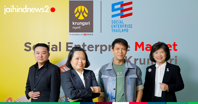 นางสาวดวงดาว วงค์พนิตกฤต (ที่ 2 จากซ้าย) ประธานคณะเจ้าหน้าที่ด้านการเงิน ธนาคารกรุงศรีอยุธยา จำกัด (มหาชน) และนายสมศักดิ์ บุญคำ (ที่ 2 จากขวา) นายกสมาคมธุรกิจเพื่อสังคมแห่งประเทศไทย ร่วมเปิดงาน Social Enterprise Market @Krungsri ณ ธนาคารกรุงศรีอยุธยา สำนักงานใหญ่ งานดังกล่าวซึ่งถือเป็นความร่วมมือระหว่างกรุงศรีและสมาคมธุรกิจเพื่อสังคมฯ ที่จัดขึ้นเพื่อสนับสนุนและเปิดโอกาสทางธุรกิจให้วิสาหกิจชุมชนสามารถเข้าถึงตลาดได้อย่างกว้างขวาง การจัดงานครั้งนี้ตอกย้ำถึงความมุ่งมั่นของกรุงศรีในการเป็นองค์กรที่ให้ความสำคัญกับการสร้างสรรค์คุณค่าร่วมแก่สังคมอย่างเป็นรูปธรรม