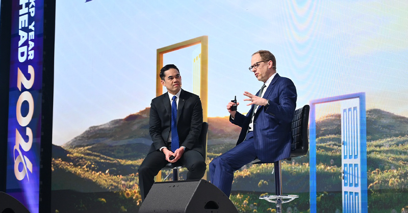 งานสัมมนา KKP Year Ahead 2026 ตอกย้ำบทบาทของกลุ่มธุรกิจการเงินเกียรตินาคินภัทร ในฐานะแหล่งข้อมูลที่เชื่อถือได้ด้านมุมมองเศรษฐกิจและการลงทุน ผ่านความร่วมมือเชิงกลยุทธ์กับ Goldman Sachs Asset Management กลุ่มธุรกิจการเงินเกียรตินาคินภัทรยังคงเดินหน้าสนับสนุนนักลงทุนและผู้นำองค์กรในการรับมือกับความไม่แน่นอน พร้อมวางกลยุทธ์เพื่อการเติบโตอย่างยั่งยืน ท่ามกลางสภาพแวดล้อมเศรษฐกิจโลกที่มีความซับซ้อนมากยิ่งขึ้น