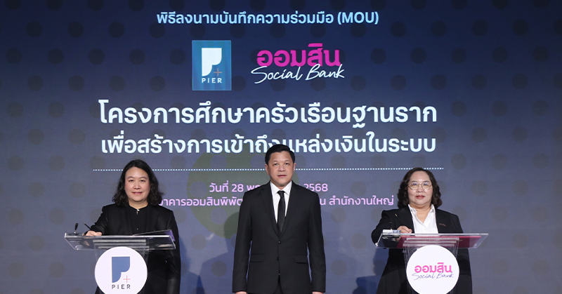 ดร. โสมรัศมิ์ จันทรัตน์ ผู้อำนวยการสถาบันวิจัยเศรษฐกิจป๋วย อึ๊งภากรณ์ เปิดเผยว่า ความร่วมมือในครั้งนี้ เป็นการศึกษาข้อมูลเชิงลึกของลูกหนี้ภายใต้โครงการ “สินเชื่อสร้างเครดิต สร้างโอกาส” ของธนาคารออมสิน ซึ่งเป็นต้นแบบสินเชื่อดิจิทัลที่เปิดโอกาสให้ผู้มีรายได้แต่ไม่เคยเข้าถึงสินเชื่อในระบบสามารถกู้เงินได้เป็นครั้งแรก โดยธนาคารออมสินได้ปล่อยสินเชื่อเพื่อช่วยคนไทยสร้างประวัติเครดิตทางการเงินไปแล้วกว่า 200,000 ราย สะท้อนถึงความต้องการเข้าถึงสินเชื่อในระบบที่ยังมีอยู่จำนวนมาก การศึกษาครั้งนี้จึงมุ่งขยาย “ประตูสู่ระบบการเงิน” ให้กว้างขึ้น ผ่านการเก็บข้อมูลเชิงลึกของกลุ่มคนที่อยู่นอกระบบเป็นครั้งแรก ใน 4 ประเด็นหลัก ได้แก่ 1) ปัญหาเศรษฐกิจการเงิน พฤติกรรมและความต้องการทางการเงิน 2) โมเดลผลิตภัณฑ์ทางการเงินที่ช่วยให้ลูกหนี้ชำระคืนได้จริง 3) การทดลองใช้ข้อมูลใหม่และข้อมูลทางเลือกเพื่อค้นหาตัวชี้วัดความเสี่ยงที่แม่นยำยิ่งขึ้นให้กับสถาบันการเงิน 4) การติดตามผลการเข้าถึงสินเชื่อต่อรายได้และคุณภาพชีวิตของลูกหนี้ตลอดระยะเวลา 1 ปี เพื่อนำไปใช้พัฒนาผลิตภัณฑ์ทางการเงินที่เหมาะสม ซึ่งผลการศึกษาจะช่วยให้ธนาคารออมสินออกแบบผลิตภัณฑ์และกระบวนการพิจารณาสินเชื่อที่เข้าถึงได้ง่ายขึ้น สอดคล้องกับศักยภาพของลูกหนี้ และเพิ่มโอกาสในการชำระคืน ขณะเดียวกัน สถาบัน ฯ จะมีองค์ความรู้เชิงลึกเพื่อนำไปสนับสนุนนโยบาย Your Data และโครงการ Risk-Based Pricing ของธนาคารแห่งประเทศไทย ช่วยให้สถาบันการเงินประเมินความเสี่ยงได้โปร่งใส เป็นธรรม และเปิดโอกาสให้ประชาชนที่ “เคยถูกมองไม่เห็น” เข้าสู่ระบบการเงินได้มากขึ้น ถือเป็นก้าวสำคัญที่เปลี่ยนงานวิจัยให้เกิดผลจริงต่อประชาชนฐานราก เสริมรากฐานระบบการเงินที่เข้าถึงง่าย ยั่งยืน และช่วยยกระดับศักยภาพและคุณภาพชีวิตของครัวเรือนไทยได้อย่างมั่นคงในระยะยาว