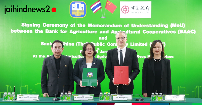 วันที่ 16 มกราคม 2568 นางสาวพรหมกร พรหมขัติแก้ว ผู้ช่วยผู้จัดการธนาคารเพื่อการเกษตรและสหกรณ์การเกษตร (ธ.ก.ส.) พร้อมด้วย Mr. Zheng Gang, Senior, Executive Vice president, BOCT ร่วมพิธีลงนามบันทึกความเข้าใจระหว่าง ธ.ก.ส. และ ธนาคารแห่งประเทศจีน (ไทย) จำกัด (มหาชน) หรือ Bank of China (Thai) Public Company Limited (BOCT) เพื่อขับเคลื่อนความร่วมมือที่มุ่งเน้นการพัฒนาบริการทางการเงิน การสนับสนุนสินเชื่อเพื่อธุรกิจ การอำนวยความสะดวกด้านธุรกรรมข้ามพรมแดน รวมถึงการแลกเปลี่ยนองค์ความรู้และเครือข่ายทางธุรกิจ เพื่อรองรับการขยายตัวของการลงทุนและการค้าระหว่างไทยและจีนในอนาคต
