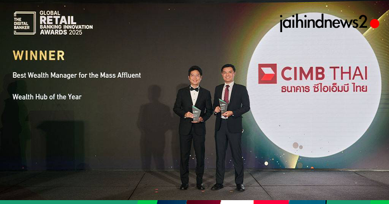 ธนาคารซีไอเอ็มบี ไทย จำกัด (มหาชน) ประกาศความสำเร็จครั้งสำคัญบนเวทีระดับโลก ด้วยการคว้า 2 รางวัลอันทรงเกียรติจาก Global Retail Banking Innovation Awards 2025 ได้แก่ Best Wealth Manager for the Mass Affluent และ Wealth Hub of the Year ซึ่งสะท้อนถึงความมุ่งมั่นของธนาคารในการยกระดับบริการบริหารความมั่งคั่งแบบครบวงจร ด้วยนวัตกรรมดิจิทัลที่เข้าถึงง่าย ปลอดภัย และตอบโจทย์ทุกความต้องการของลูกค้า โดยมี คุณภูดินันท์ เศรษฐนันท์ Head, Affluent & Wealth Management (ซ้าย) และคุณธนภูมิ สกุลพฤกษาชาติ (ขวา) Head, Investment Products เป็นตัวแทนรับรางวัล