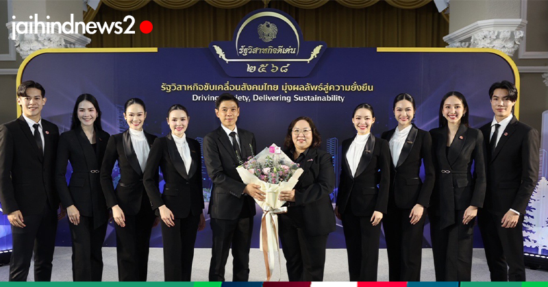 นางลภาวรรณ จันทร์กระจ่าง รองผู้อำนวยการธนาคารออมสิน รักษาการแทนผู้อำนวยการธนาคารออมสิน แสดงความยินดีกับ ดร.มหัทธนะ อัมพรพิสิฏฐ์ กรรมการผู้จัดการธนาคารอาคารสงเคราะห์ (ธอส.) ในโอกาสที่ ธอส. ได้รับรางวัลความร่วมมือเชิงยุทธศาสตร์เพื่อการพัฒนาดีเด่นและอีกหลายรางวัล ในงานมอบรางวัลรัฐวิสาหกิจดีเด่น (SOE Awards) ประจำปี 2568 ซึ่งจัดโดย สำนักงานคณะกรรมการนโยบายรัฐวิสาหกิจ กระทรวงการคลัง เพื่อยกย่องรัฐวิสาหกิจที่มีผลการดำเนินงานโดดเด่นในแต่ละด้าน เป็นกำลังใจและส่งเสริมให้รัฐวิสาหกิจทุกแห่งมีความมุ่งมั่นในการขับเคลื่อนองค์กรอย่างมีประสิทธิภาพ สร้างคุณค่าต่อเศรษฐกิจและสังคมของประเทศ ณ ตึกสันติไมตรี ทำเนียบรัฐบาล เมื่อวันที่ 22 ธันวาคม 2568