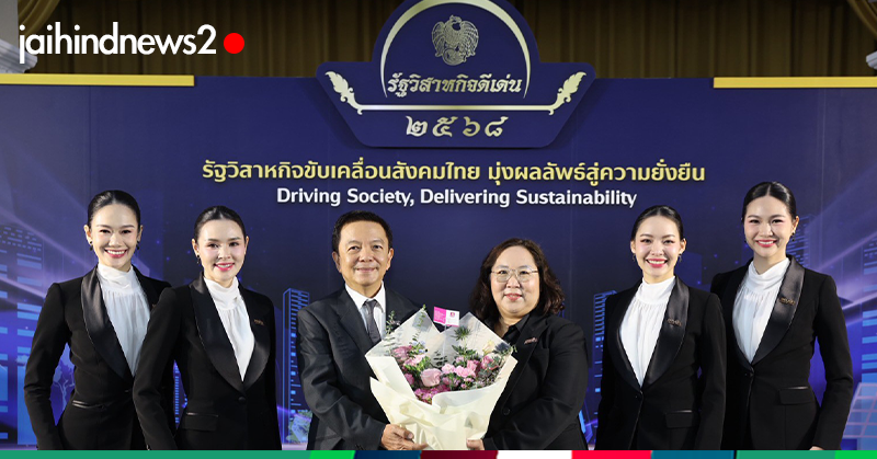 นางลภาวรรณ จันทร์กระจ่าง รองผู้อำนวยการธนาคารออมสิน รักษาการแทนผู้อำนวยการธนาคารออมสิน แสดงความยินดีกับ ดร.คงกระพัน อินทรแจ้ง ประธานเจ้าหน้าที่บริหารและกรรมการผู้จัดการใหญ่ บริษัท ปตท. จำกัด (มหาชน) ในโอกาสที่ ปตท. ได้รับรางวัลรัฐวิสาหกิจยอดเยี่ยมและอีกหลายรางวัล ในงานมอบรางวัลรัฐวิสาหกิจดีเด่น (SOE Awards) ประจำปี 2568 ซึ่งจัดโดย สำนักงานคณะกรรมการนโยบายรัฐวิสาหกิจ กระทรวงการคลัง เพื่อยกย่องรัฐวิสาหกิจที่มีผลการดำเนินงานโดดเด่นในแต่ละด้าน เป็นกำลังใจและส่งเสริมให้รัฐวิสาหกิจทุกแห่งมีความมุ่งมั่นในการขับเคลื่อนองค์กรอย่างมีประสิทธิภาพ สร้างคุณค่าต่อเศรษฐกิจและสังคมของประเทศ ณ ตึกสันติไมตรี ทำเนียบรัฐบาล เมื่อวันที่ 22 ธันวาคม 2568