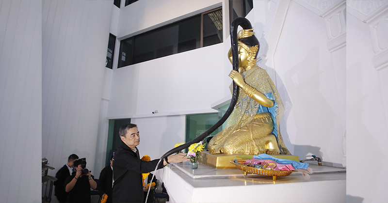 นายอภิสิทธิ์ เวชชาชีวะ หัวหน้าพรรคประชาธิปัตย์  นายสกลธี ภัททิยกุล รองหัวหน้าพรรคประชาธิปัตย์ ดูแลพื้นที่กรุงเทพมหานคร นำ 33 ผู้สมัคร สส. กทม. พรรคประชาธิปัตย์ สักการะพระแม่ธรณีบีบมวยผมเพื่อความเป็นสิริมงคล  ณ ที่ทำการพรรค
